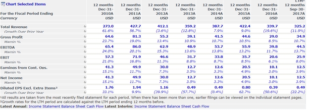 Also it may be helpful to read the call transcripts from Seeking Alpha. The main take away from the recent one – company’s recent decrease in revenue mainly related to longer annual maintenance, which lead to decline in production, while industry trends are positive and support margin expansion.