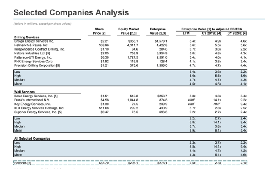 PKD management claims that the company is undervalued as it only recently came out of the bankruptcy (March’19). The company trades at 2.3x LTM EBITDA and 2.5x Forward EBITDA which is materially below peers on both metrics.
