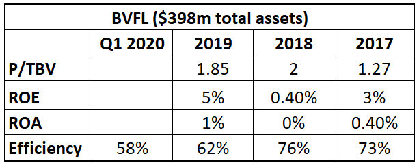 BVFL is a partially converted thrift bank and there’s a potential for a second step conversion, which used to be a lucrative opportunity in the past. Currently, 87% of its shares are held by Mutually Held Corporation (MHC) that is controlled by bank’s depositors. The bank partially converted to stock in 2005 – part of shares was offered to the public, while the remaining 55% were left in the hands MHC. Subsequently, BVFL made two acquisitions in 2013 and 2019 (Vigilant and Kopernik) in which additional shares were issued to the MHC increaqsing it’s stake to 68.5% and 87% .