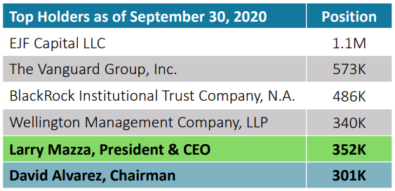 The largest shareholder EJF Capital is a large ($13bn AUM) asset management firm focused on regulatory event-driven investing in financials and real estate. They’ve first reported majority ownership in 2016 (over 6%) and increased their stake to 9.6% over the years.