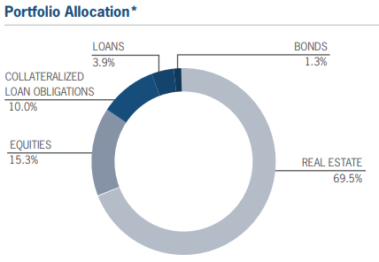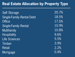 - You can find current yields on other REIT preferred stocks here. Most of these trade at 6%+ yields (which would translate into $23 or lower preferred price). However, yields on storage (PSA and NSA) and single-family rental (AMH) REIT preferreds stand at/below 5.5%. These two sectors are where 50% of NHF real estate portfolio is focused (chart below). So with that in mind, there is a reasonable chance investors will price the newly issued preferreds close to par value. A similar conclusion has been made here.