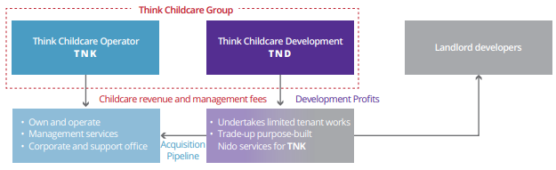 Think Childcare Group offers child care services in Australia and is also engaged in management and consultancy services to third parties or incubator partners. TNK owns and manages 74 centers under the Nido brand name.