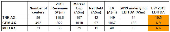 The latest proposal from Busy Bees now stands at 6x 2020 underlying EBITDA vs 6.55x for GEM.AX and 5.76x for MFD.AX. So the current offer absolutely ignores significantly superior operational performance and growth prospects of TNK and also misses any takeover premium.
