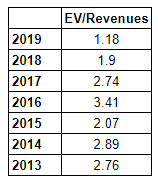 Even assuming the eventual closure of Brazil operations, the 2019 revenues multiple valuation still seems low as before 2016 the company used to trade at 2x+ EV/revenues with flat revenues of around $26m-$28m annually.