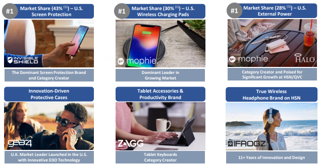 Zagg manufactures smartphone screen protection and various other mobile phone/tablet accessories. Despite the increasing competition, the company has retained a leading U.S. market share across its key segments (presentation):