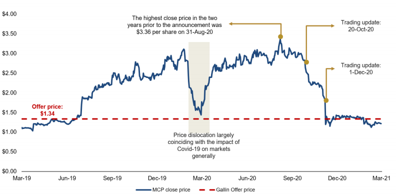 - 31st Mar – Media reports highlighted two major MCP shareholders, Microequities Asset Management and Investors Mutual, opposing the offer.