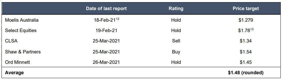 - 17th Feb’21 – H1 FY21 results were released (see financials in the “Business” section above). Underlying PBT reported slightly above the upper range of the amended guidance (A$7.7m vs A$7.5m). MCP stated uncertainty in short-term outlook due to difficulties in future sales in China and expectation of H2 and FY21 EPS materially below previous years’ results. The share price dropped from A$1.32 to A$1.21/share.
