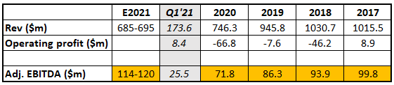 LTM results were affected by COVID and for 2021 TPCO guides adj. EBITDA at $114-$120 (vs $72m in 2020). This would value the company at 3.6-3.8x forward EBITDA. This multiple seems quite low – despite the gradually declining top-line, adj. EBITDA remained relatively stable over the years (with exception of covid impact). TPCO is still in transition from the traditional newspaper business model, closing down unprofitable operations, cutting costs, and increasing margins.