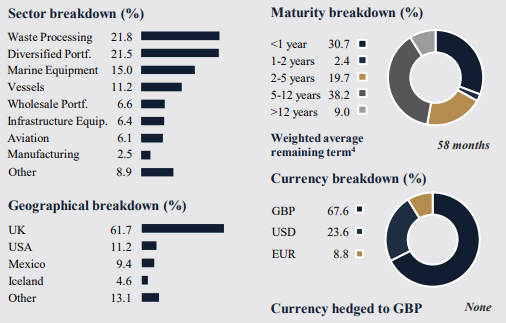 - Borrower 46 – Secured loan to buy a new AW169 helicopter in June 2018. It is currently on lease in Germany. Given this is a performing asset and has been amortizing debt (was originally a £6.5mm facility) the relatively high provision reflects what the manager calls “the limitations of German Mortgage/German Security”. In our experience recovery of secured assets in Germany is a reasonably straightforward affair. Based on our analysis the LTV is high c 80-90% on an unleased basis.