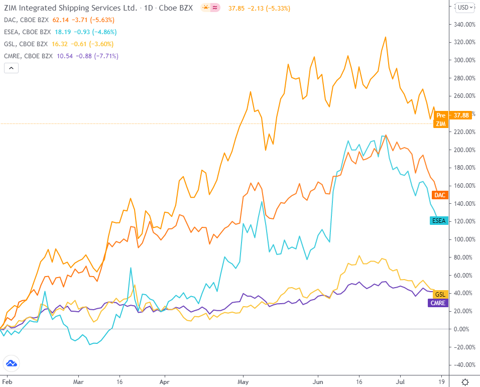 Nor has ZIM’s stock price experienced the kind of crazy run-up prior to unlock, as in the case of CLOV.