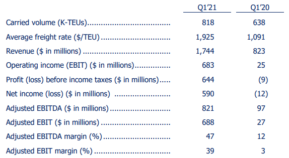 The whole containership sector is profiting in large from these rate increases – ZIM major peer Maersk is up 180%+ since the COVID outbreak and 36% YTD. Meanwhile, ZIM trades 150% above its IPO price (Feb’21). ZIM has more than doubled its revenues by only increasing shipping volume by 30% YoY. Not surprisingly, all of these incremental revenues went straight to the bottom line.