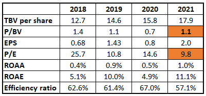 The share + cash (non odd-lot) consideration values RYFL at 1.2x TBV - a premium to the valuation over the recent years (except 2018), which is also an all-time high price. FNWD trades at 1.25x TBV.