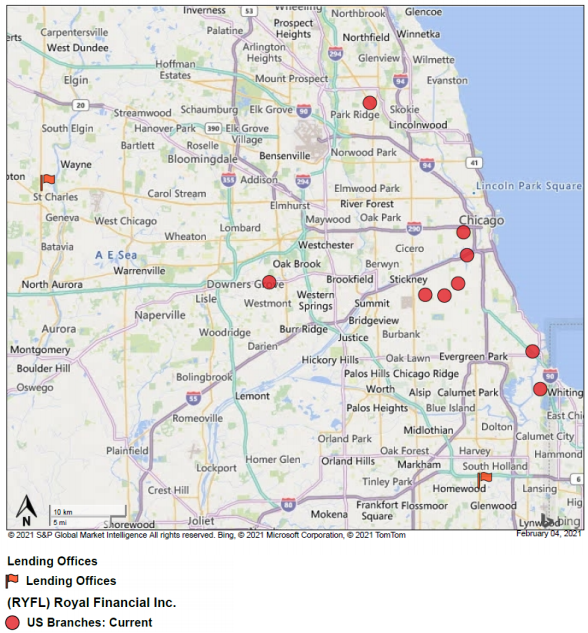 Royal Financial operates 11 branches in Chicago with $533m in total assets.