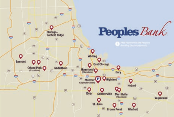 The buyer operates Peoples Bank with branches Lake and Porter Counties, Northwest Indiana, and South Chicagoland. 22 locations. $1.6bn total assets.