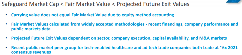 Since Jun’21, the company has exited exited Flashtalking generating $44.8m cash proceeds (vs $19.2m cost basis) and announced the current tender offer for $35m of outstanding shares. On top of that, SFE owns 1.3m Bright Health Group (BHG) shares, which at the market value are worth around $13m, but will be locked until Dec’21.