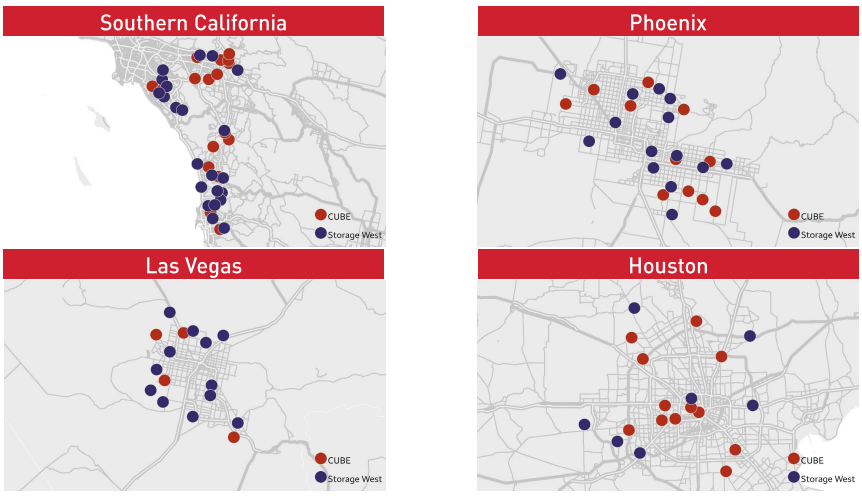 LAACO owned Storage West operates 59 self-storage assets in the highly desired western markets of Southern California (22), Phoenix (17), Las Vegas (13), and Houston (7). Two of these properties are owned by two separate joint ventures, each owned fifty percent by LAACO. Total rentable square feet is 4.4m. Laaco doesn’t report with the SEC and apparently doesn’t have an investor relations page, but financials can be found here.