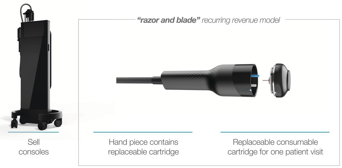 FDA clearance for using the technology for tattoo removal was received in mid-2019 and for short-term improvement in the appearance of cellulite – in February 2021. On the 29th of April’21, FDA has finally approved the final version of SOLY’s Resonic system console (see picture below). The product was launched in Sep’21 and until the end of the month (Q3), it generated $370k revenues. The company says that it is a “razor and blade” revenue model as aside from the whole system sales, it will also have recurring revenues from cartridge sales (1 cartridge per client, different cartridges for tattoo and cellulite treatments).