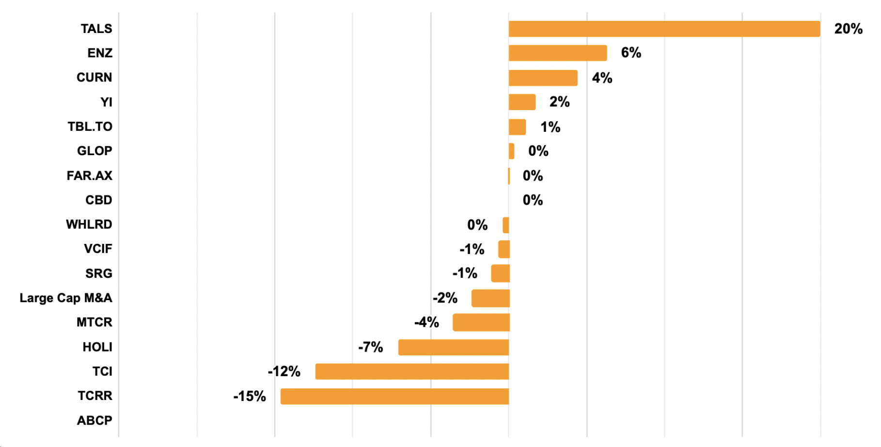 Below you will find a more detailed breakdown of tracking portfolio returns by individual names as well as elaborations on names exited during the month.