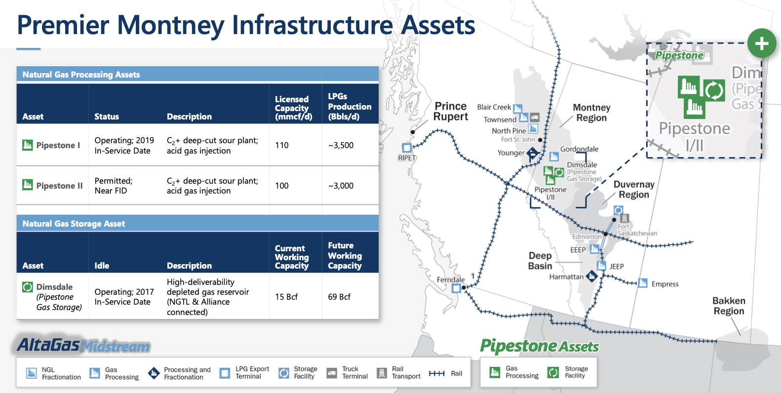 Pipestone is a high-quality asset that is 100% contracted with investment-grade tenants, has 63% of its revenue mix in take-or-pay contracts, and average contract term of 8.5 years. Together with the existing gas plant, TWM is also selling an expansion project Pipestone Phase II, which would double the plant’s throughput capacity, as well as two other interconnected terminal/storage facilities. The buyer of these assets is AltaGas, a large energy infrastructure company with a C$7bn market cap. The acquisition will strengthen AltaGas’ presence in the region, where it already has a nearby refinery and other midstream assets a bit further away.